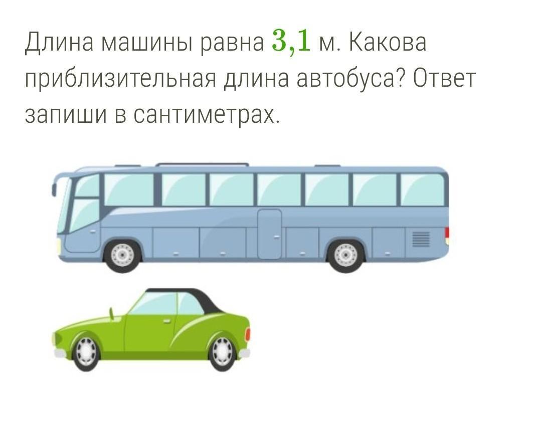 Автобус ≈ 2 машины, следовательно автобус равее 6,2 см (310 см).