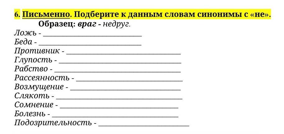 подбери к данным словам синонимы с не