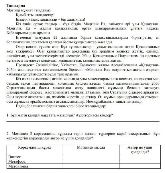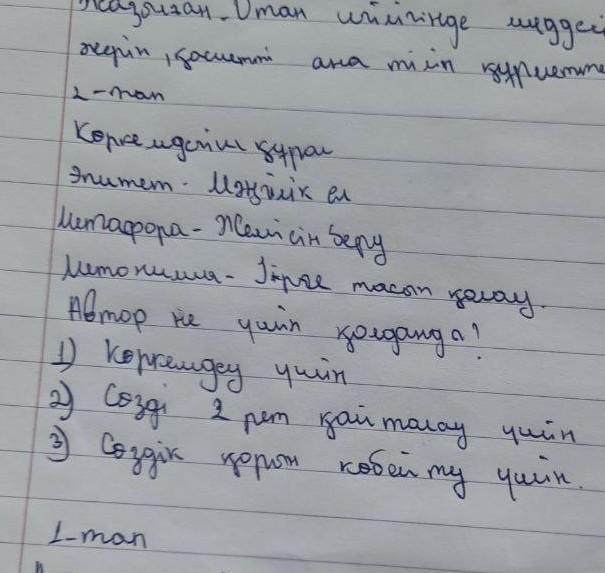 мәтіннен 3 көркемдегіш құралды теріп жазып, түрлеріне қарай ажыратыңыз. Бұл көркемдегіш құралдарды автор не үшін қолданды?