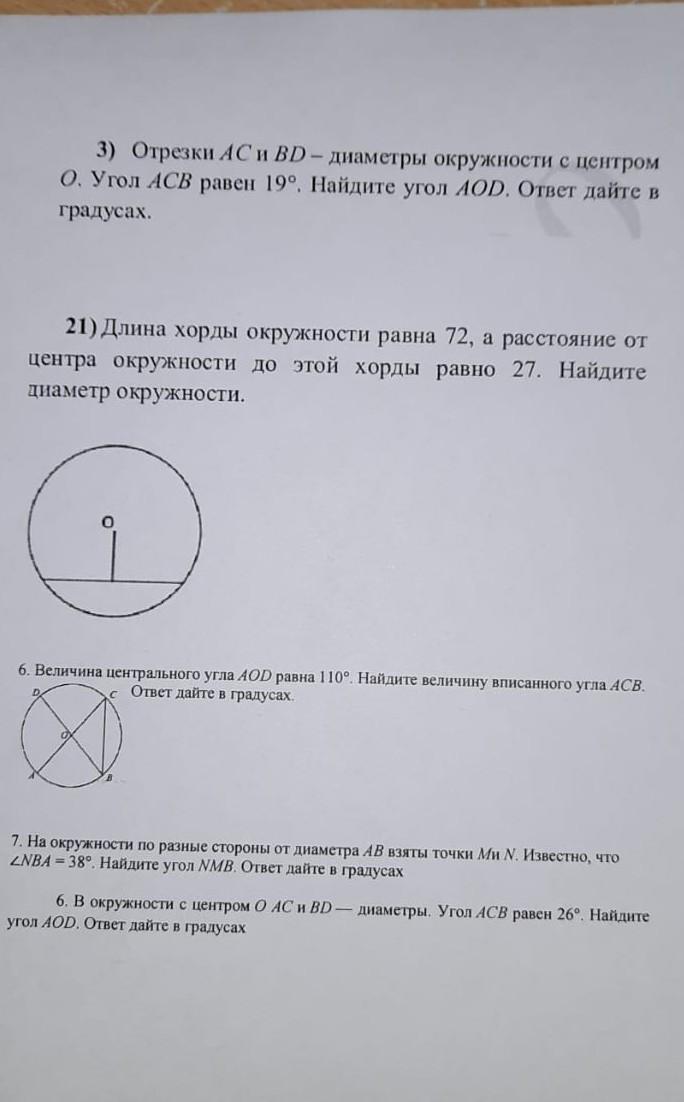 6)BD=AC(т.к. это диаметры)--> BO=OC(центр окр. делит диаметр пополам)-->треугольник BOC-равнобедренный-->угол BCO=OBC=26