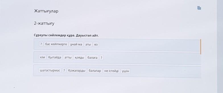 Сұраулы сөйлемдер құра. Дауыстап айт.