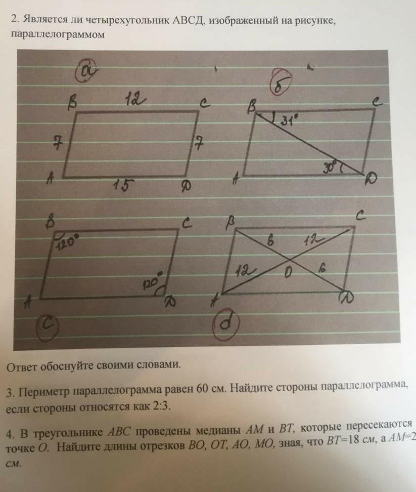 является ли четырехугольник ABCD изображенный на рисунке параллелограммом Ответ обоснуйте своими словами. помогите пожалуйста СРОЧНО СРОЧНО НАДО