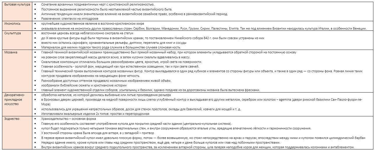 история 6 класс таблица по культуре Византии кратко пж срочно