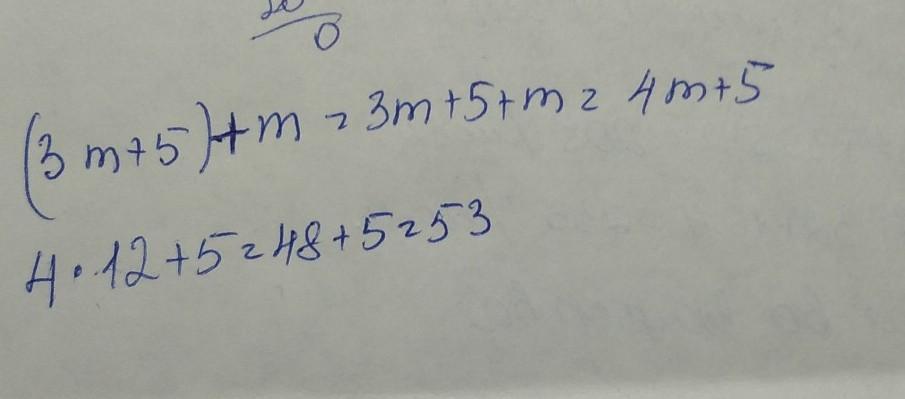 Упростите выражение (3m+5)+m и вычислите его значение при m=12