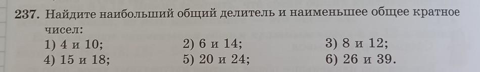 237. Найдите наибольший общий делитель и наименьшее общее кратное