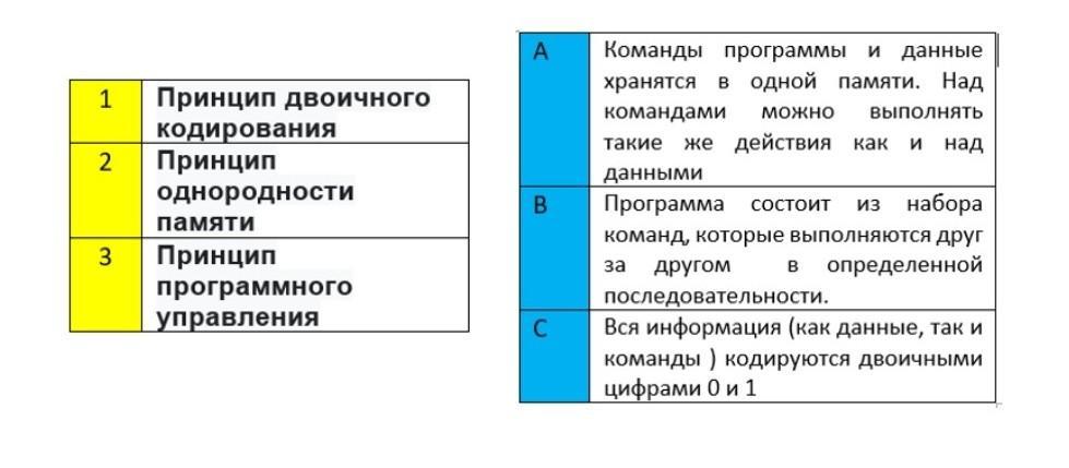 Установи соответствие между названием принципа фон Неймана и его описанием.