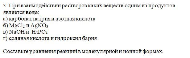 При взаимодействии растворов каких веществ одним из продуктов является вода: