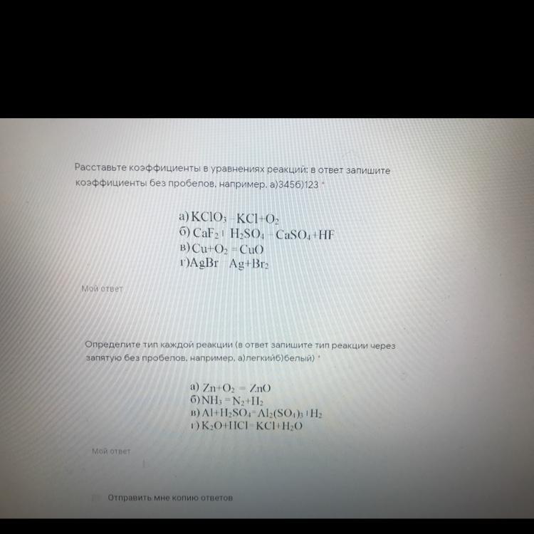 Помогите решить где нужно расставить коэффициенты и тип каждой реакции