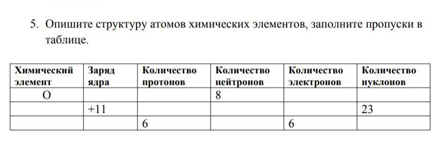 Опишите структуру атомов химических элементов , заполните пропуски в таблице