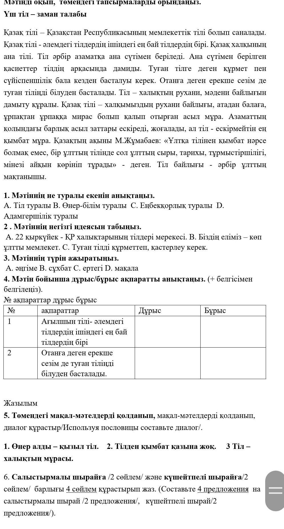 С.Туған тілді құрметтеп, қастерлеу керек.