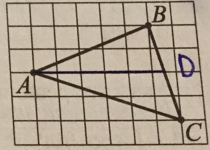 на клетчатой бумаге с размером клетки 1 см х 1 см отмечен треугольник АВС с вершинами в узлах сетки. найдите длину медианы, проведённой к стороне BC этого треугольника. ответ в сантиметрах. (фото)