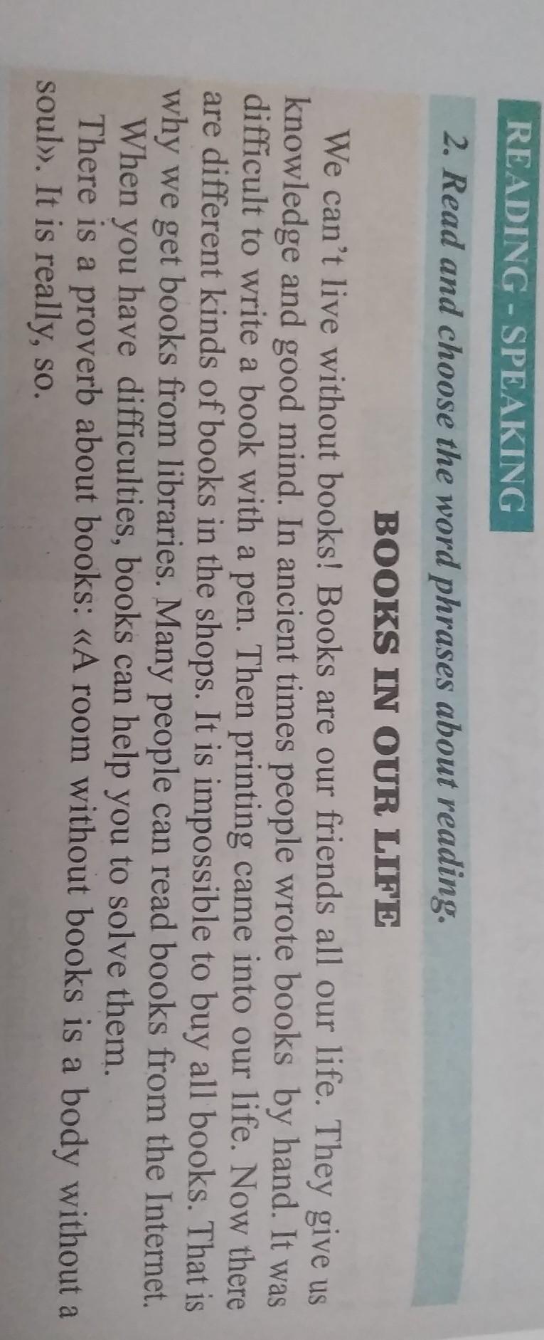 Мы не можем жить без книг! Книги наши друзья на протяжении всей жизни. Они дают нам знания и хороший ум. В древние времена люди писали книги вручную. Было сложно писать книгу ручкой. Печать пришла в наши жизни. Теперь в магазинах большое количество разеых видов книг. Невозможно купить все книги. Поэтому мы берем книги в библиотеке. Многие люди читают книги из интернета.