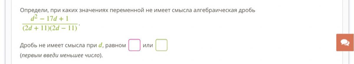 Определи, при каких значениях переменной не имеет смысла алгебраическая дробь