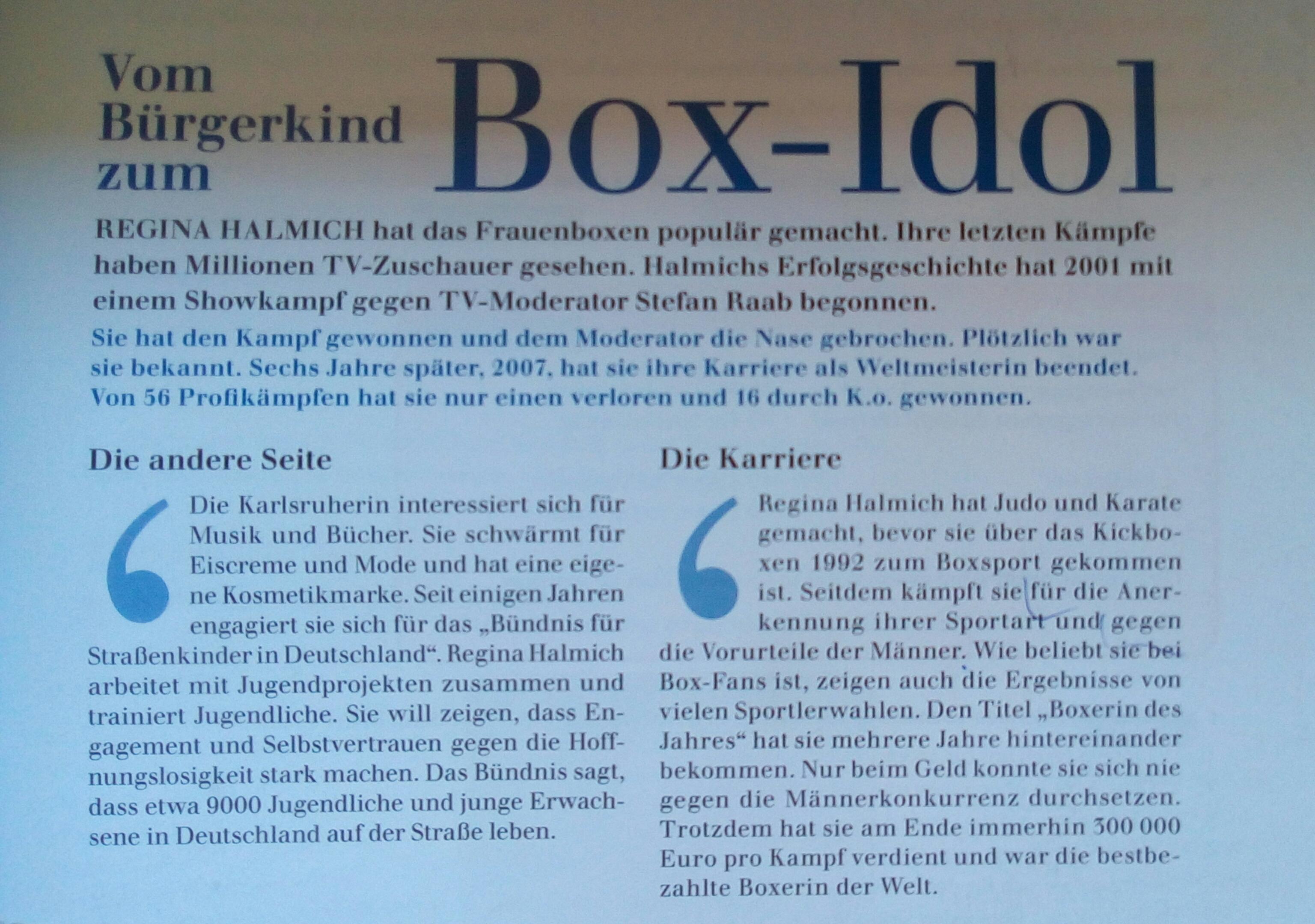 3. Mir gefällt Regina, weil sie von 56 Profikämpfen nur einen verloren hat.