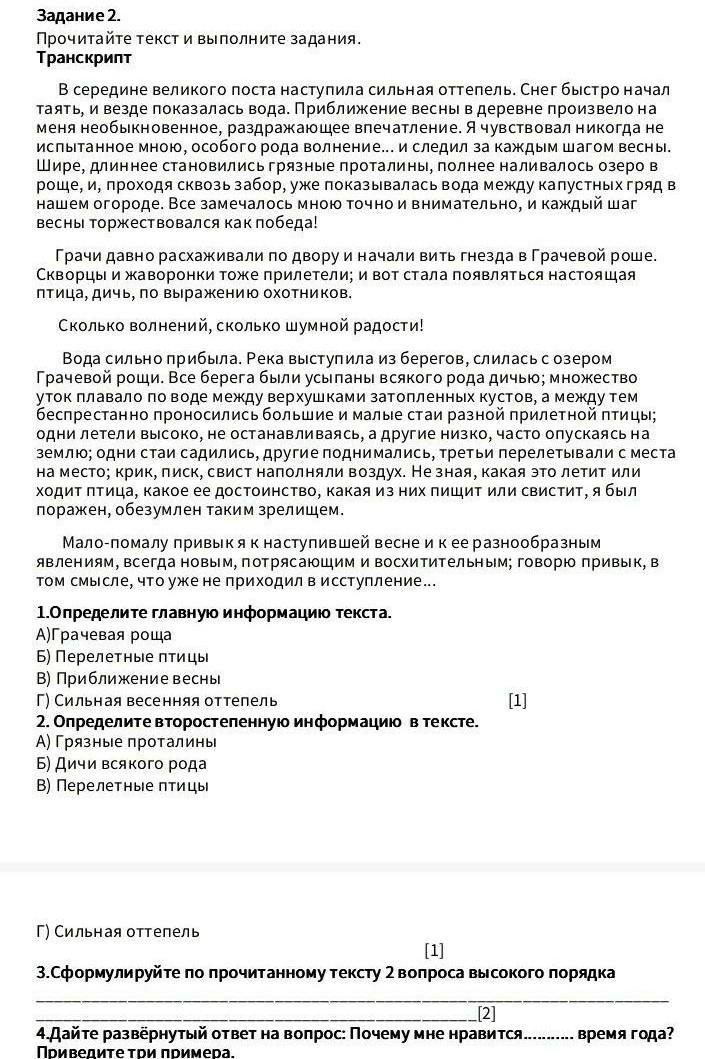 сформируйте по прочитанному тексту 2 вопроса высокого порядка пж кімде барр