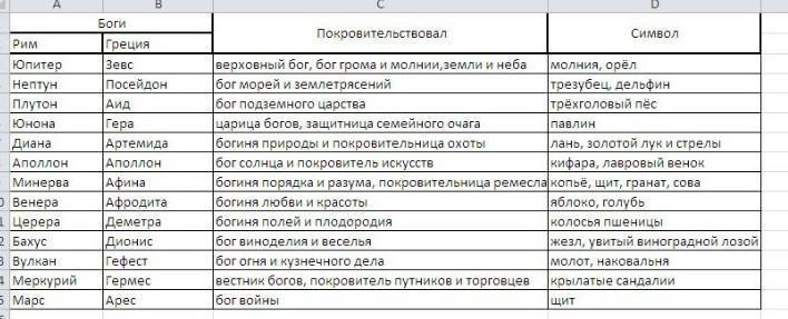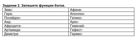 Запишите функции богов именно ФУНКЦИИ а не кто они