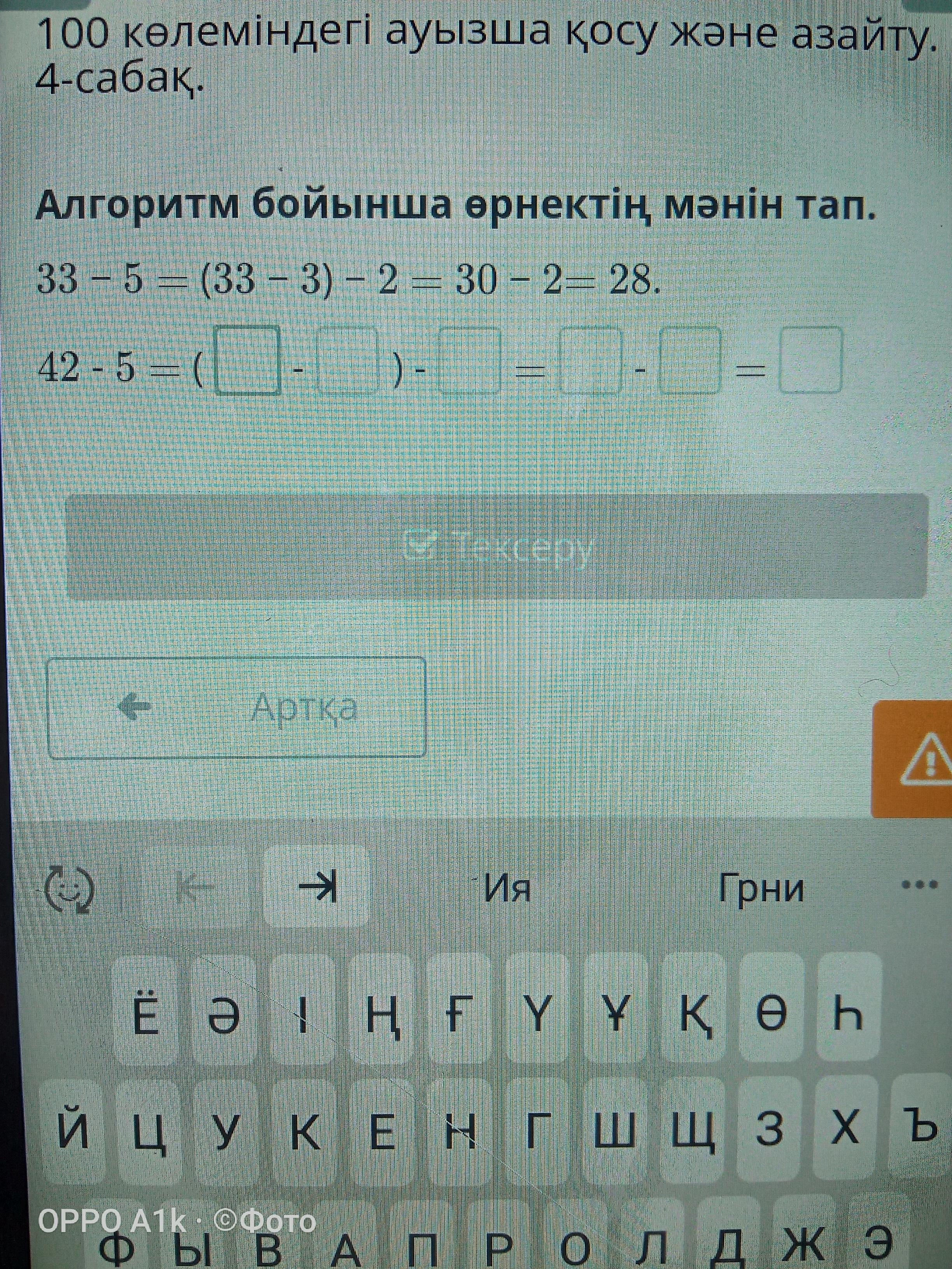 Найдите значение выражения по алгоритму. 33-5 = (33-3)-2 = 30-2=28.