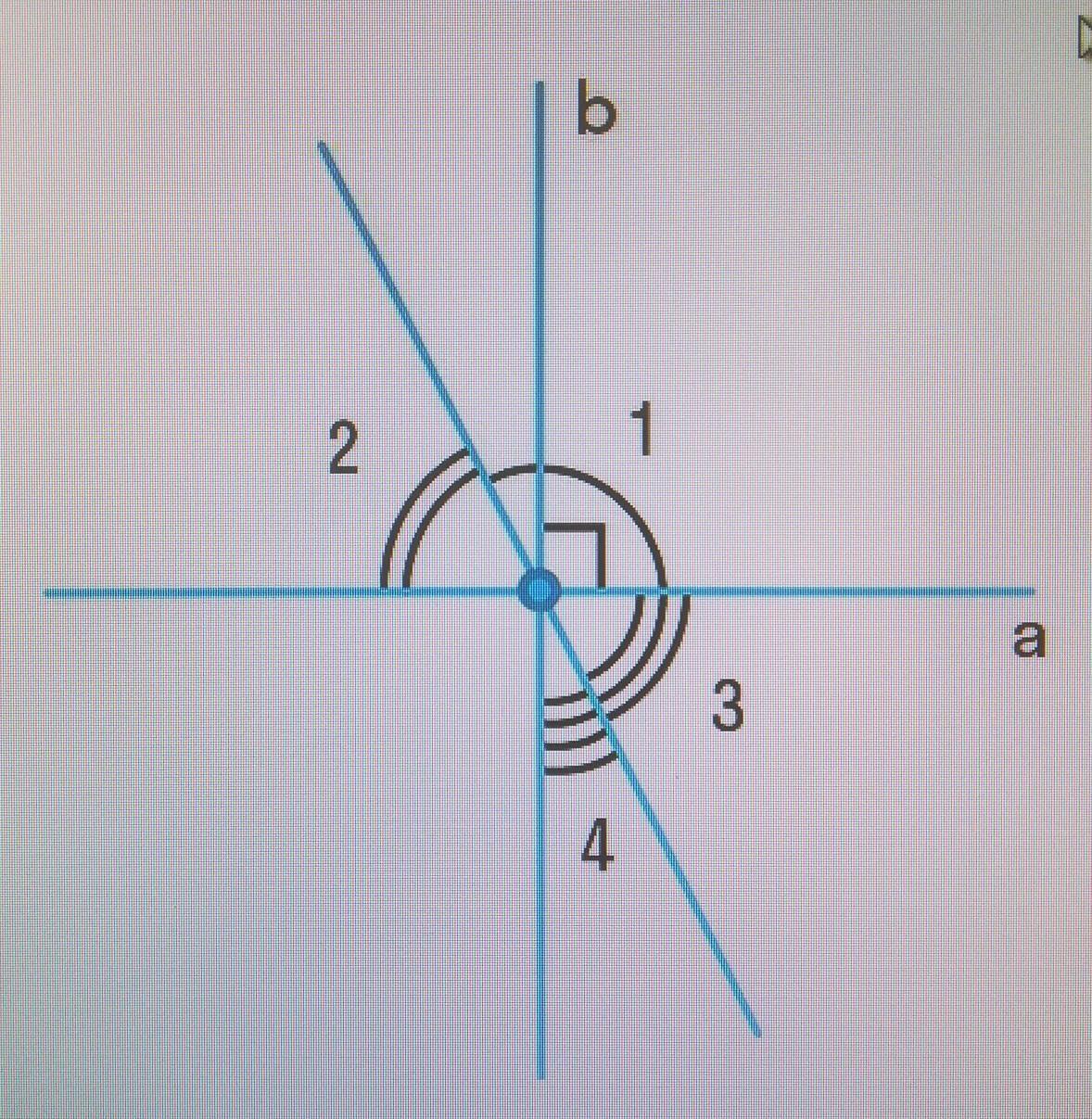 На рисунке прямые а и b перпендикулярны, 1:2 = 3:1. Найди углы 1, 2, 3 и 4.