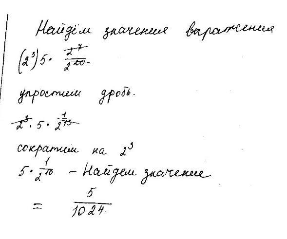 Найдите значение выражения А) (2³) 5 • 2⁷ / 2²⁰