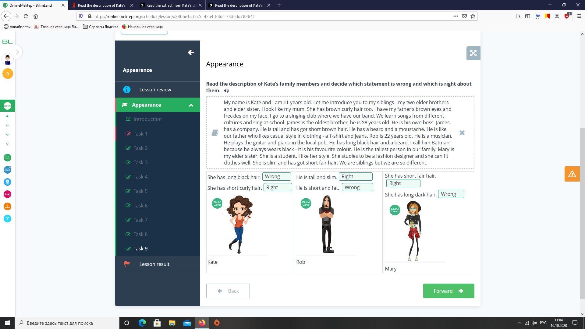Read the description of Kate's family members and decide which statement is wrong and which is right abo