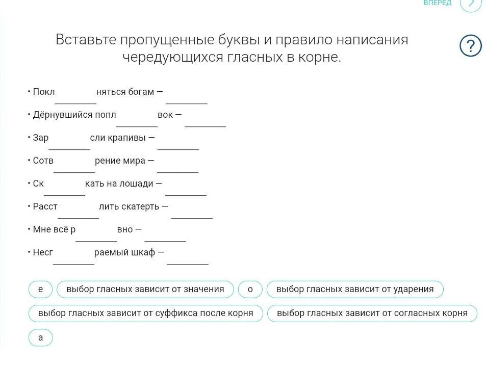 дёрнувшийся по/плав/ок - выбор гласных зависит от ударения