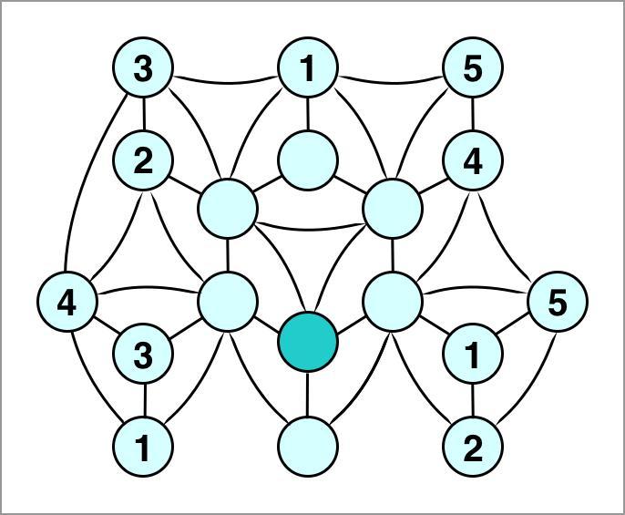 В кружки на рисунке требуется вписать числа 1, 2, 3, 4 или 5 так, чтобы в кружках,