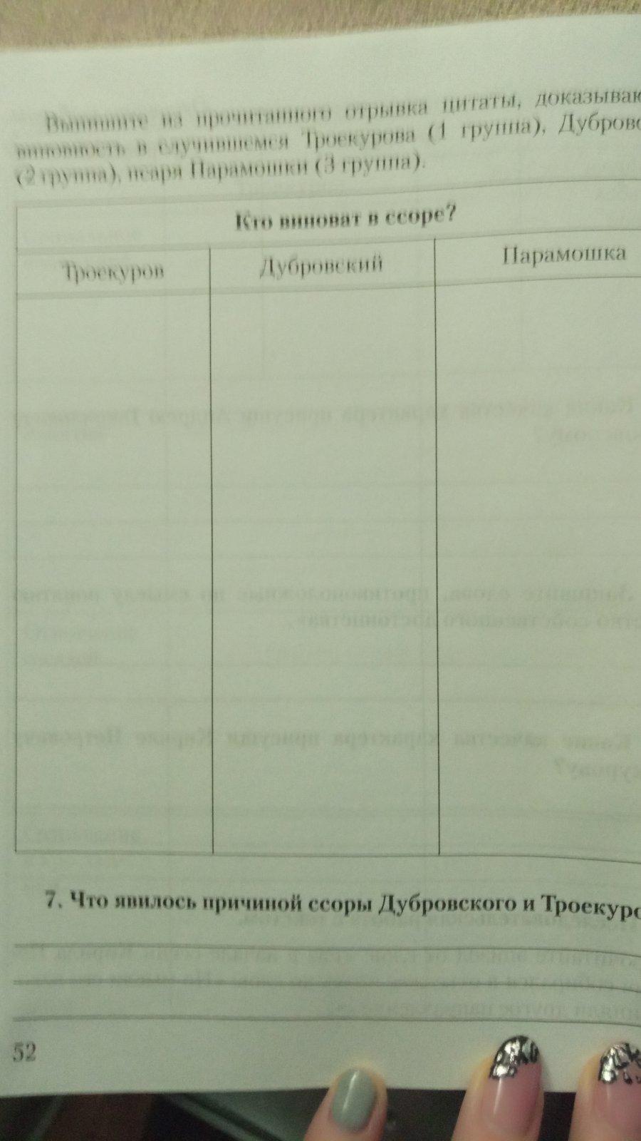 Изначально виноват один из псарей Троекурова, Парамошка, который неудачно и неуважительно пошутил над Дубровским. Но Троекуров виноват не меньше, ему следовало бы не смеяться над глупой шуткой, и приказать Парамошке явиться с повинною перед Дубровским, как последний требовал. Но Троекуров не пожелал пойти на мировую и выдавать Дубровскому на суд своих людей, разозлился и пообещал отомстить.