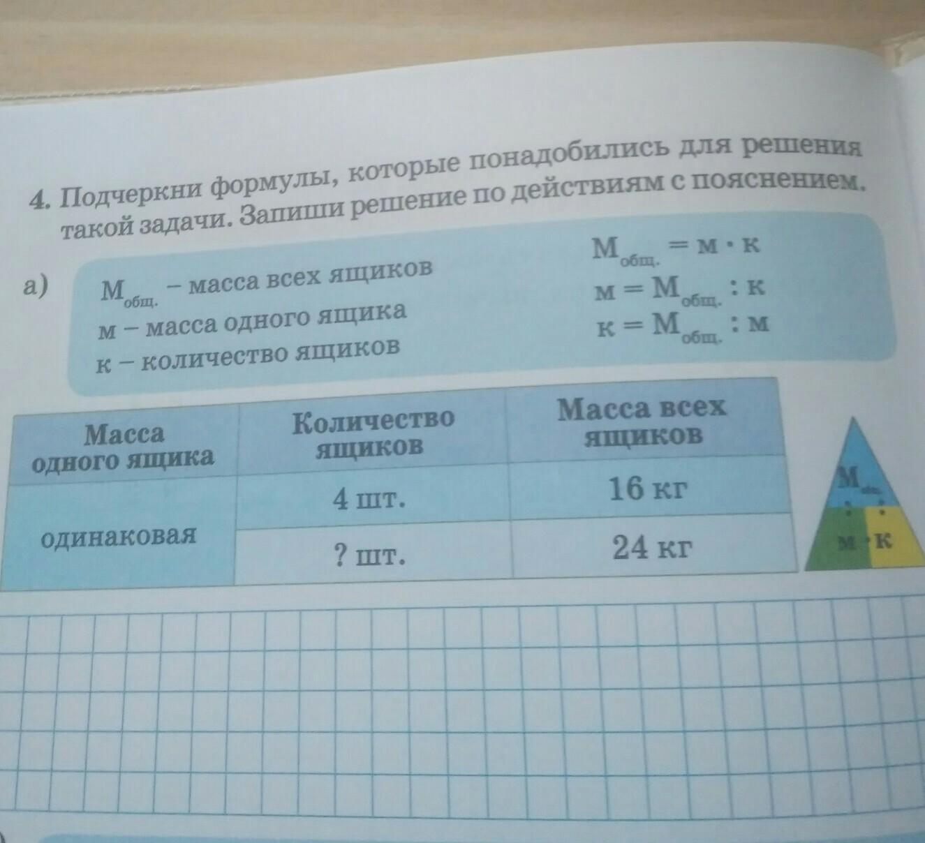 Подчеркни формулы, которые понадобились для решения такой задачи. Запиши решение по действам с пояснением.
