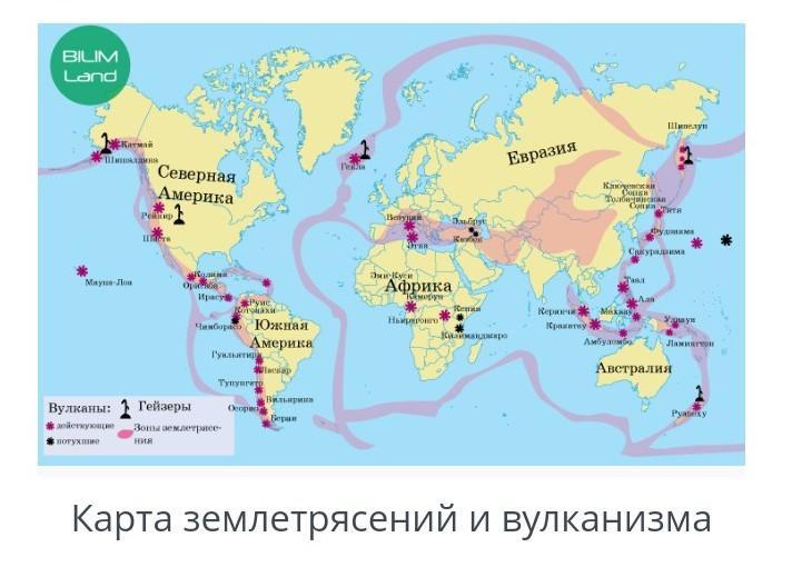 Карта землетрясений и вулканизма