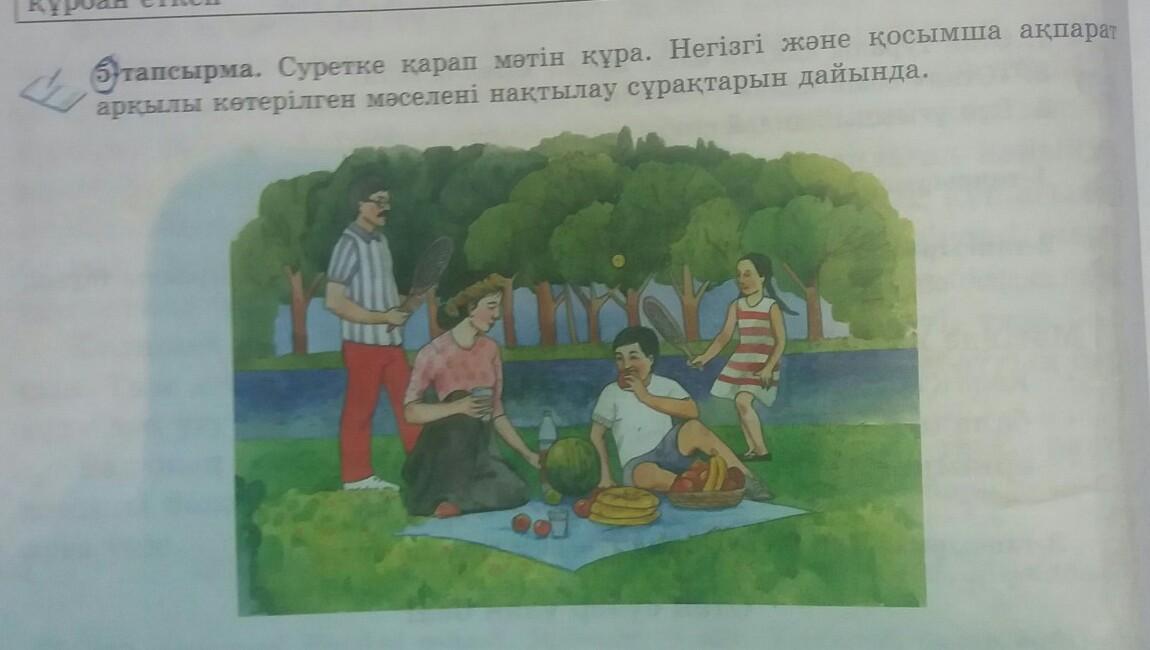 орманда.Әкесі, шешесі, ұлы мен қызы. Қызы әкеммен бірге теннис ойнайды, ал ұлы мен шешесі отыра отырып, қарбыз жейді.Бұл отбасы керемет пикник жасады!