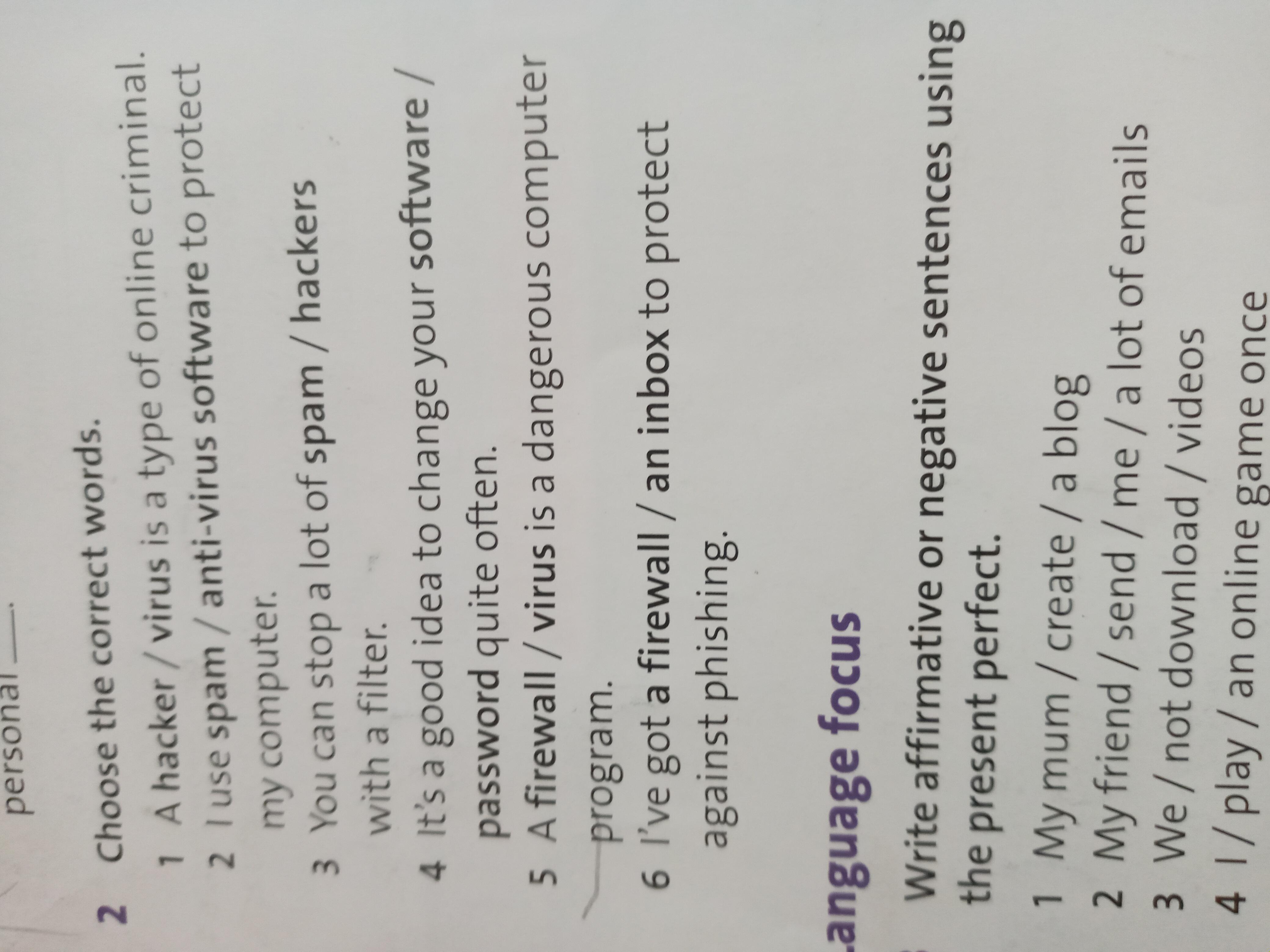 Choose the correct words.