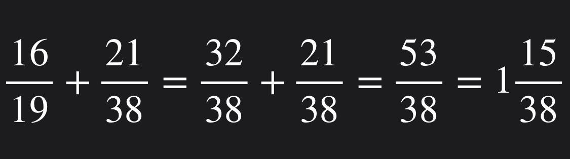 16/19+21/38=32/38+21/38=53/38=1+15/38