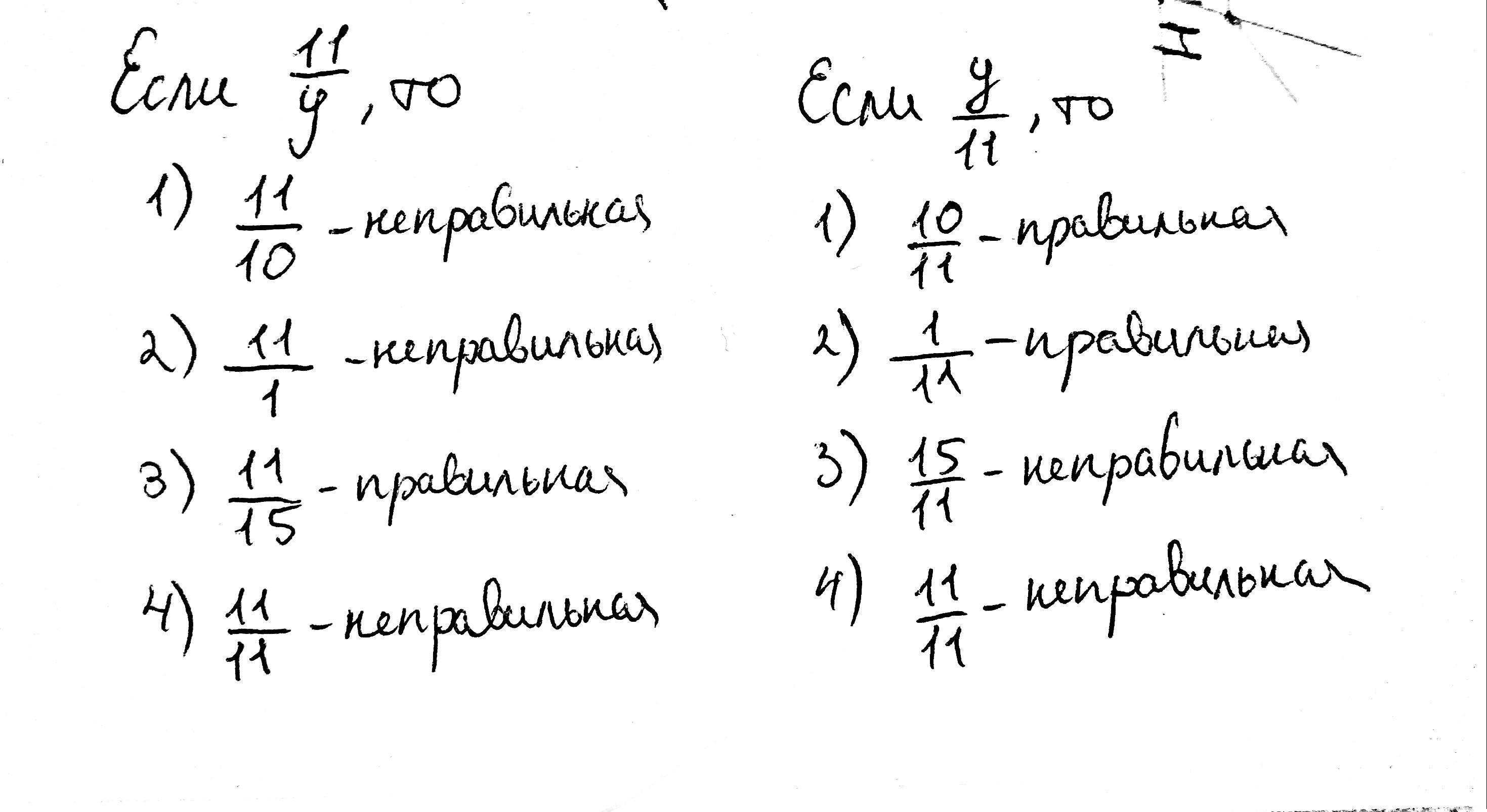 Правильный или неправильный будет дробь 11 , если: 1) у = 10; 2). в = 1; 3). у = 15; 4) у = 11. Помогите срочно !!!!!