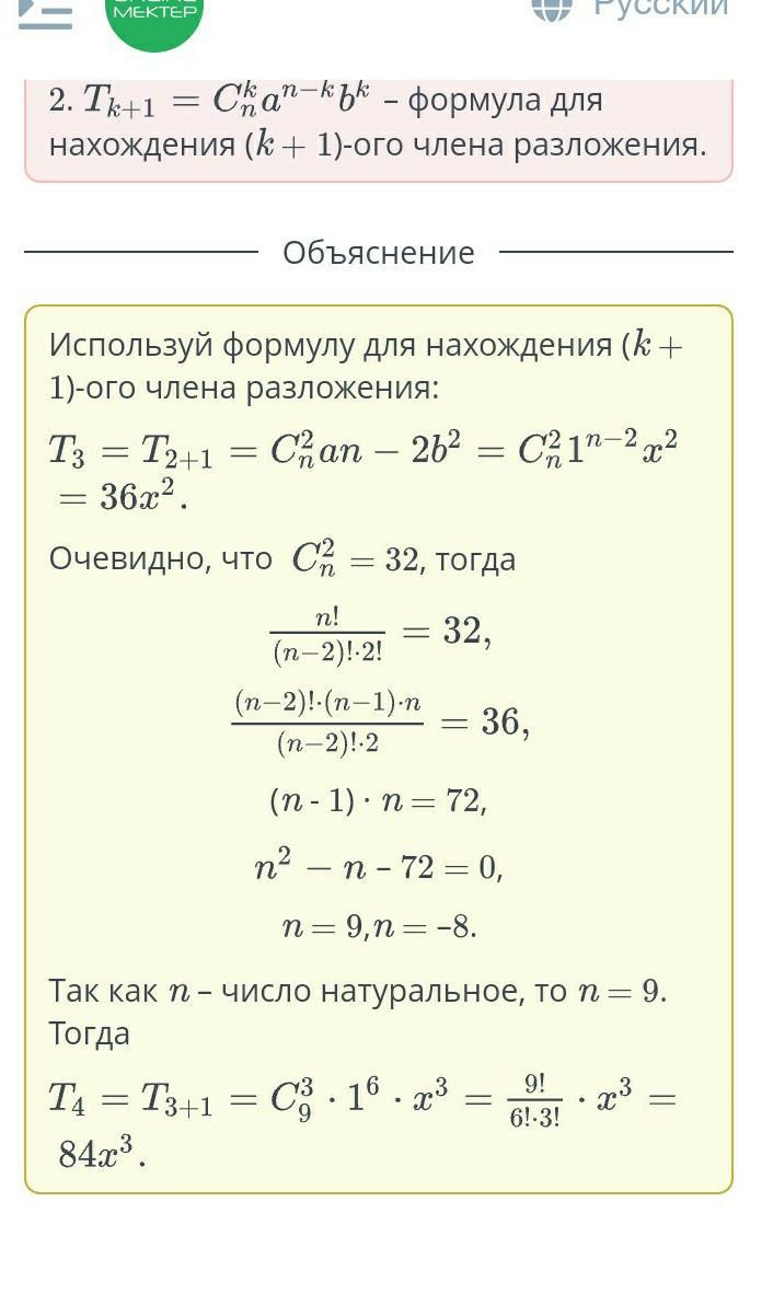 Третий член в разложении бинома (1 +a)" равен 32x, найди четвертый член