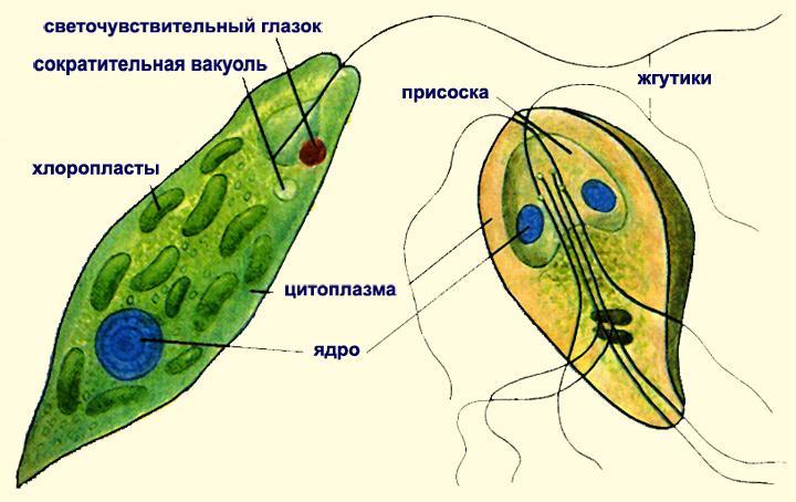 Эвглена зеленая имеет хлорофилл в хлоропластах и на свету способна фотосинтезировать. Как известно, кислород является побочным продуктом при фоосинтезе и выделяется эвгленой в воду, обогощая ее