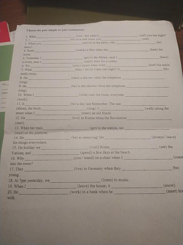 5) yesterday I went to the library, next I had a swim, later I met Julie for a coffee.