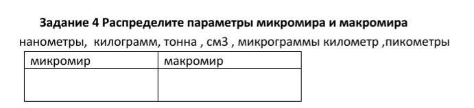 Макромир-нанометр,килограмм,тонна,кмлометр,пикометр.