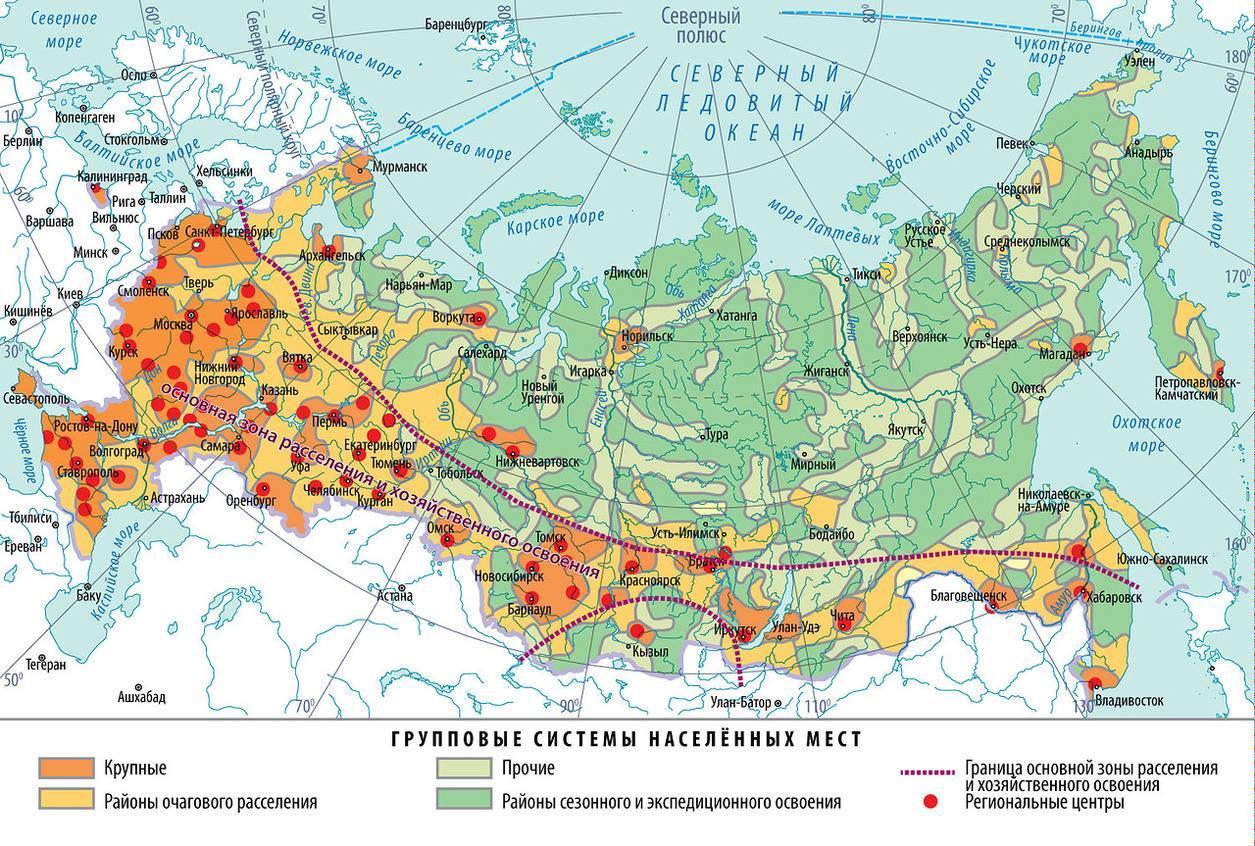 Какие города расположены в главной полосе расселения?