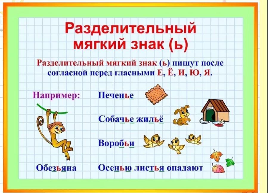 Помогите пожалуйста сделать. подчеркни одной чертой разделительный мягкий знак (ь), двумя чертами буквы, перед которыми он пишется. платье, листья, воробьи, вьюга, перья, соловьи, друзья.