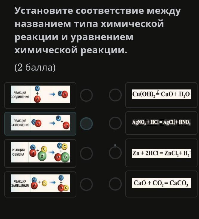 установите соответствие между названием типа химической реакции и уравнением химической реакции