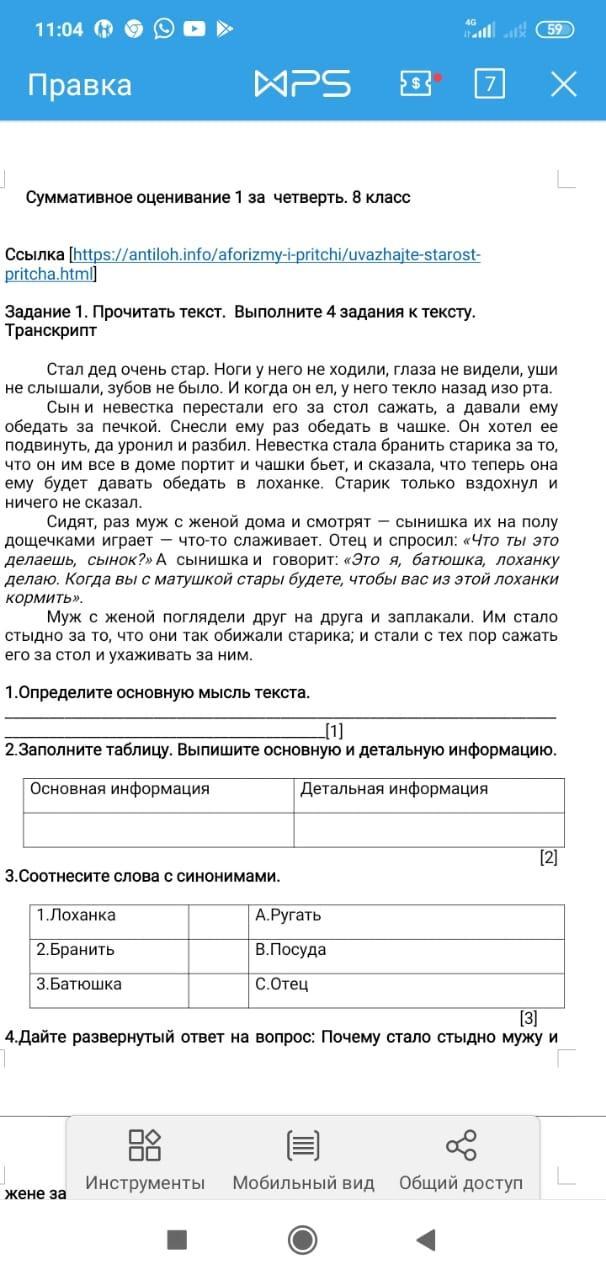 1. Основная мысль текста : Не обижать стариков и уважать старость.