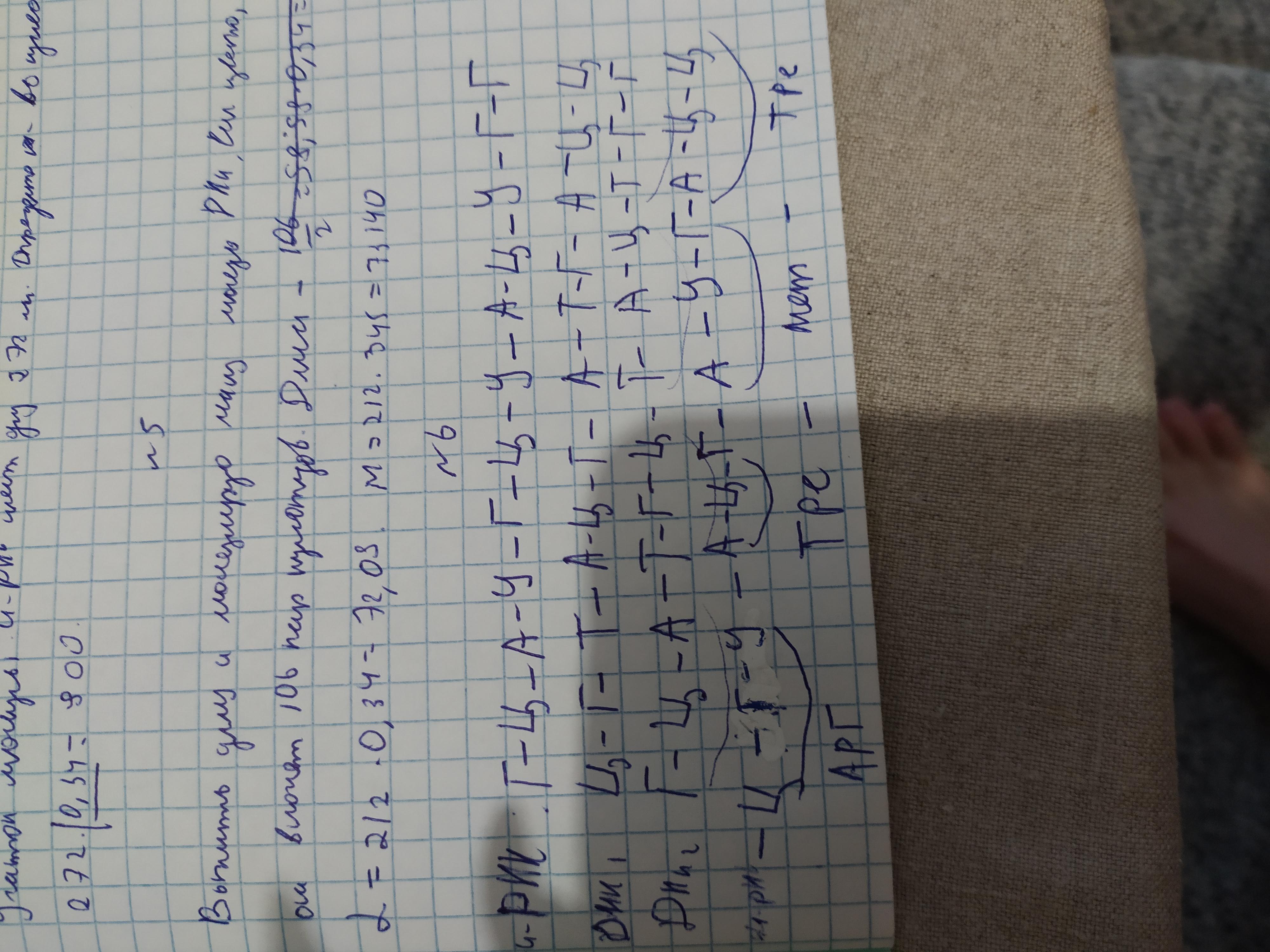 ЗАДАЧА 7. Определите триплеты (антикодоны) т-РНК, участвующие в синтезе белка,