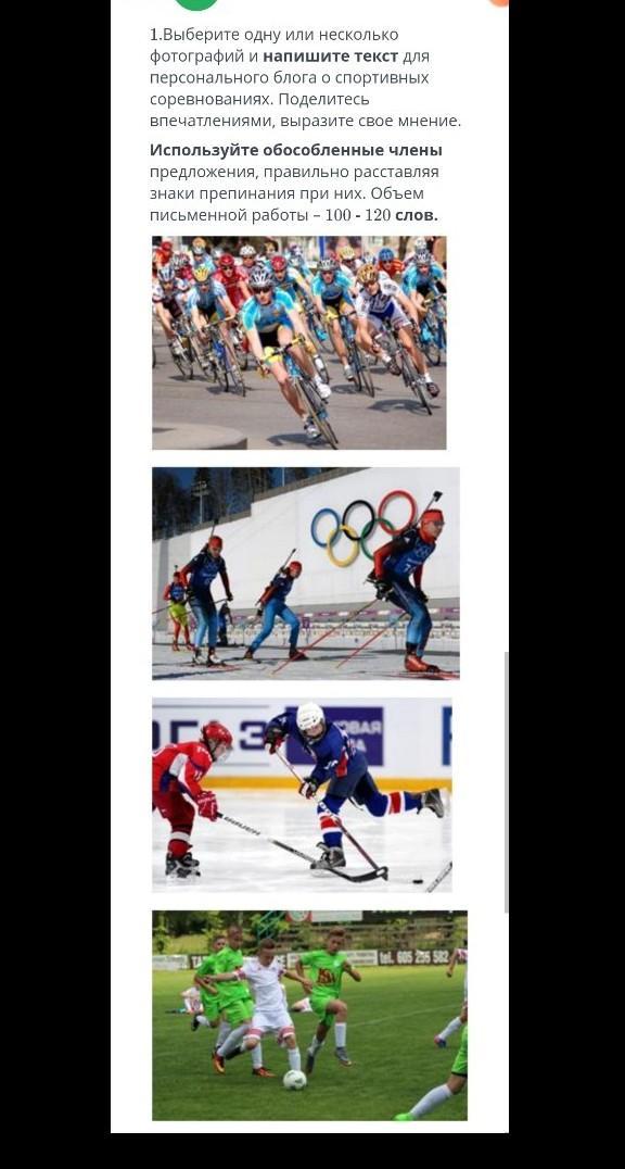 выберите одну или несколько фотографии и напишите для персонального блога о спортивных соревнованиях