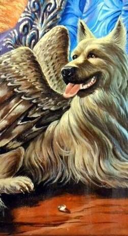 Бог в облике крылатого пса , посредник между миром людей и миром богов?