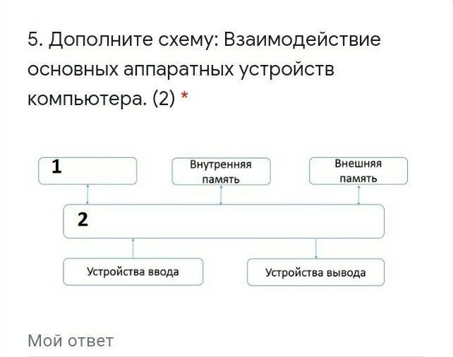 Дополните схему: Взаимодействие основных аппаратных устройств компьютера.