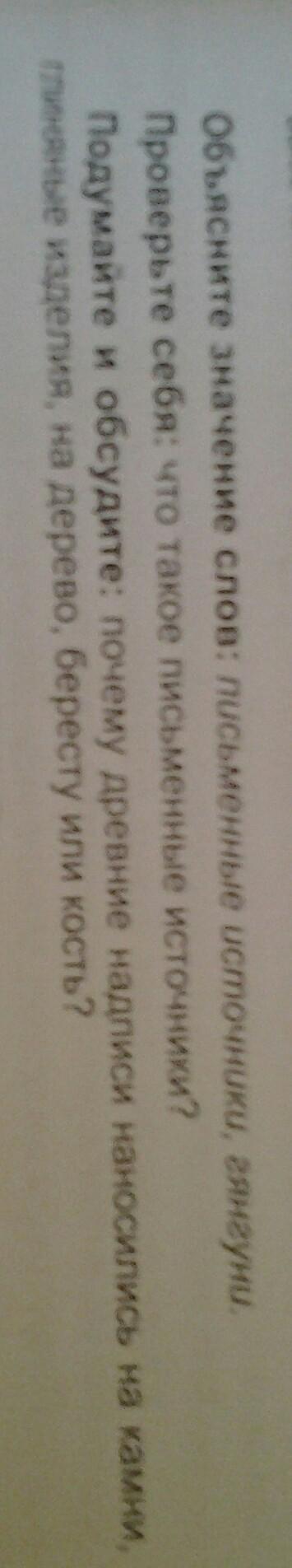 подумайте и обсудите: почему древние надписи наносились на камни, глинянные изделия, на дерево, бересту или кость?