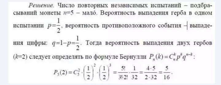 Монета подброшена 5 раз. Найдите: 1) вероятность того, что монета выпадет гербовой стороной ровно 2 раза; 2) вероятность того, что монета выпадет гербовой стороной по меньшей мере 2 раза; 3) вероятность того, что монета выпадет гербовой стороной не менее, чем 3 раза; 4) наивероятнейшее число выпадания монеты гербовой стороной