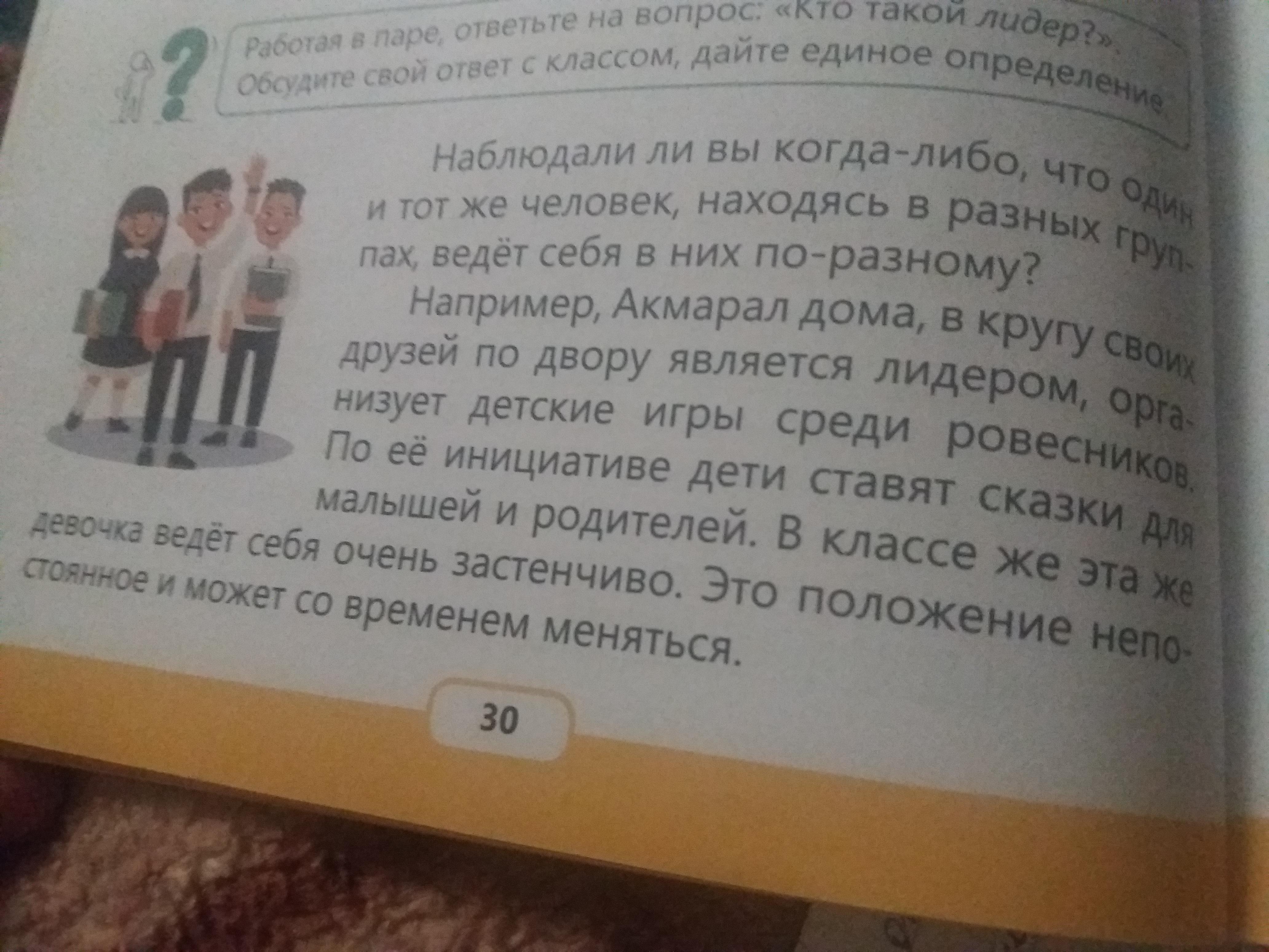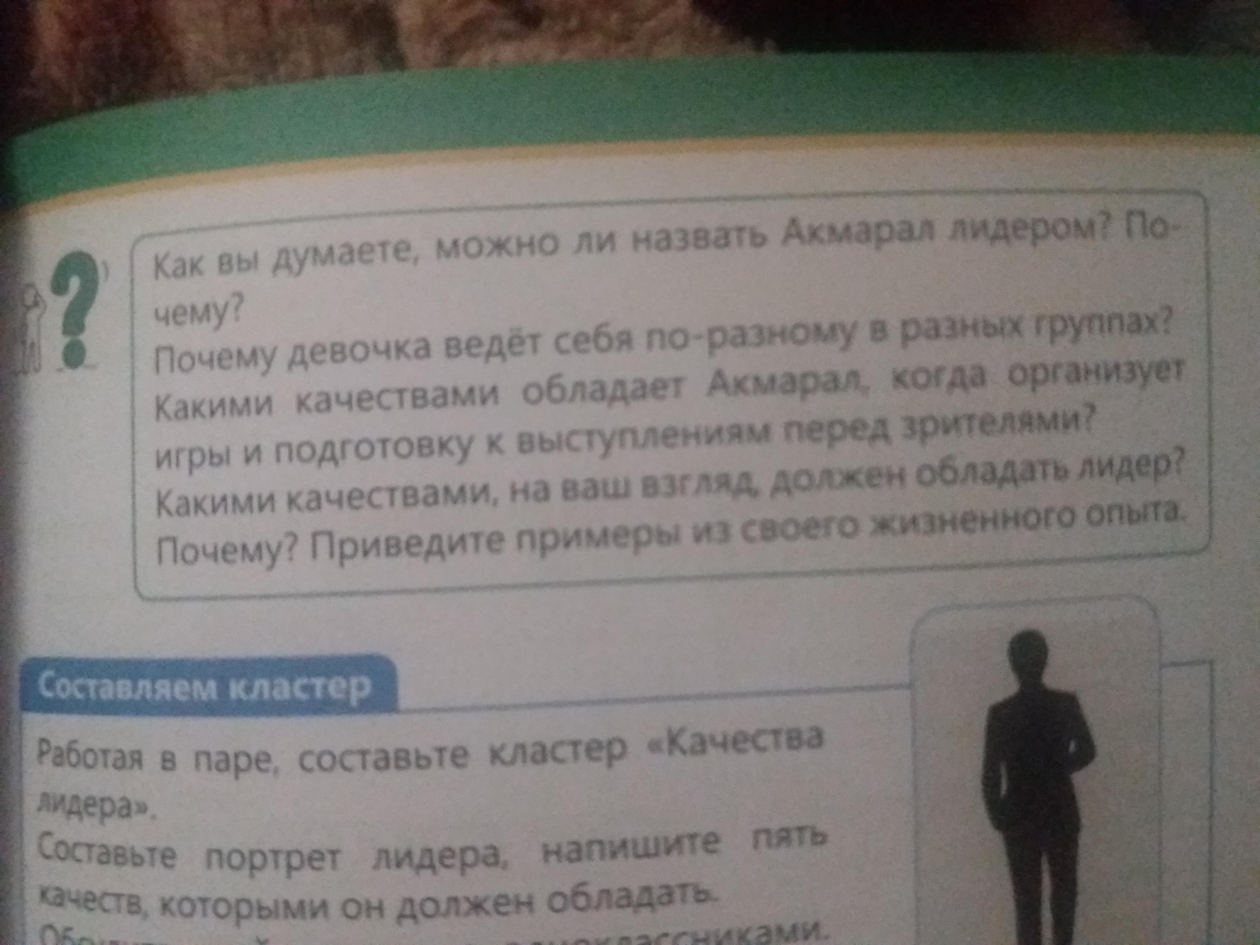 Я считаю что Акмарал могла бы стать лидером и среди ровесников, но для этого нужно быть немного смелее. Ей стоит больше времени проводить с одноклассниками, как говорят "если хочешь избавиться от страха перед чем-то, столкнитесь с ним лицом к лицу".
