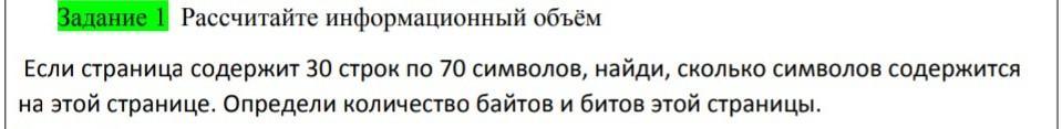 Рассчитайте йнформацыонный объём если страница содержит 30 строк по 70слов,найди сколька символов содержится на этой странице пжжж ато мне пипец