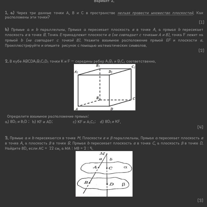 внимание в пункте d чуточку сложнее. нужно увидеть в пространстве плоскость(покрашена жёлтым ), содержащую KF, и параллельную плоскости , содержащей BD₁ (покрашена голубым).
